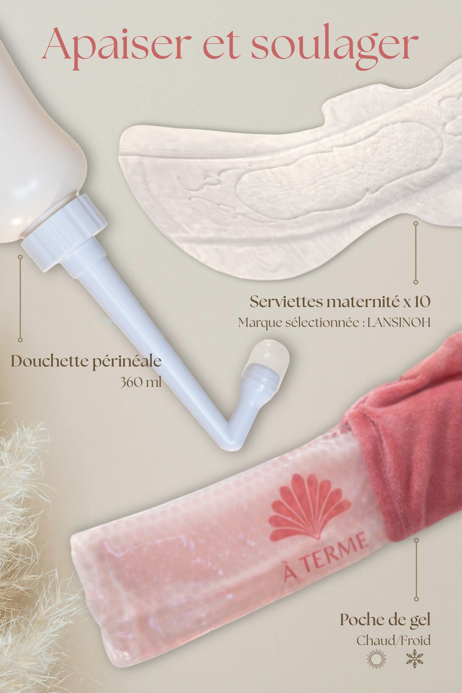 Designed to gently support every mother, the À TERME kit brings together essentials selected for their quality, comfort and real usefulness .